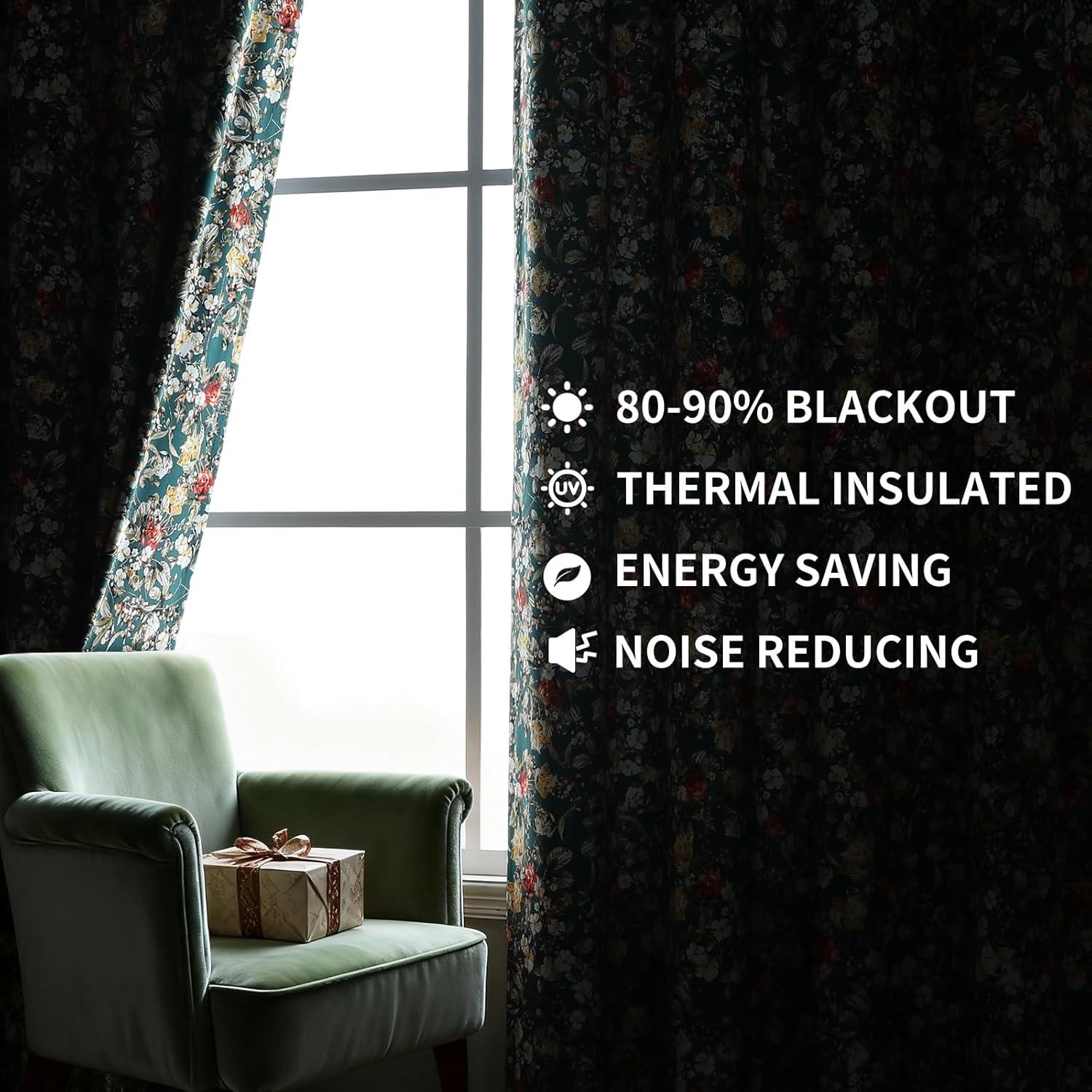 EASY CARE: These floral velvet curtains are easy to maintain. Simply machine wash in cold water and tumble dry on low heat for effortless upkeep. Iron on low heat if needed.