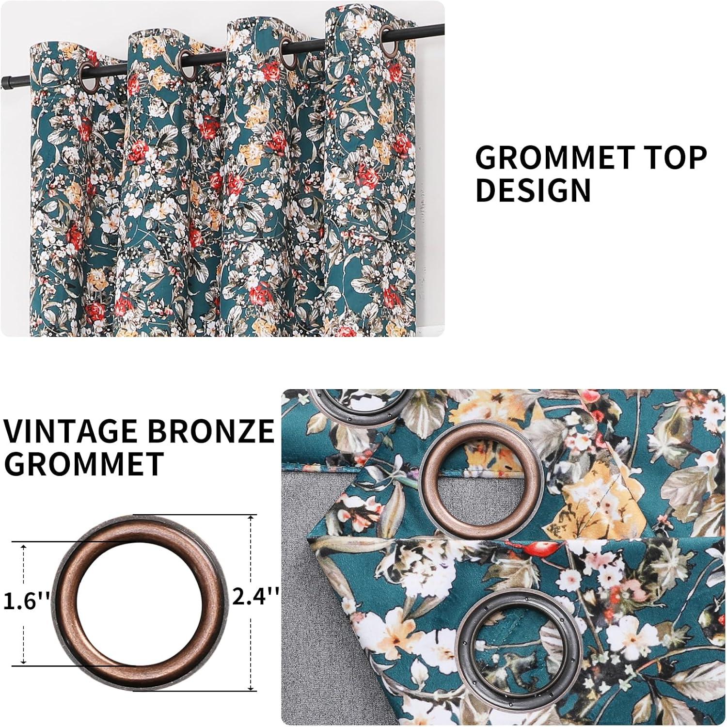 PAIR SOLD: Sold by one pair. The package includes 2 flower design velvet curtain panels. Each curtain panel is designed with 8 Vintage bronze grommets(inside diameter is 1.6 inches). Easy to install and slide, suitable for most rods.